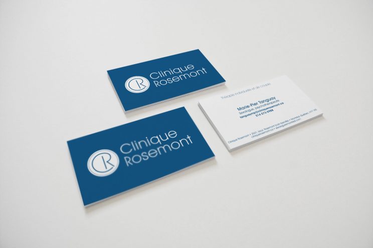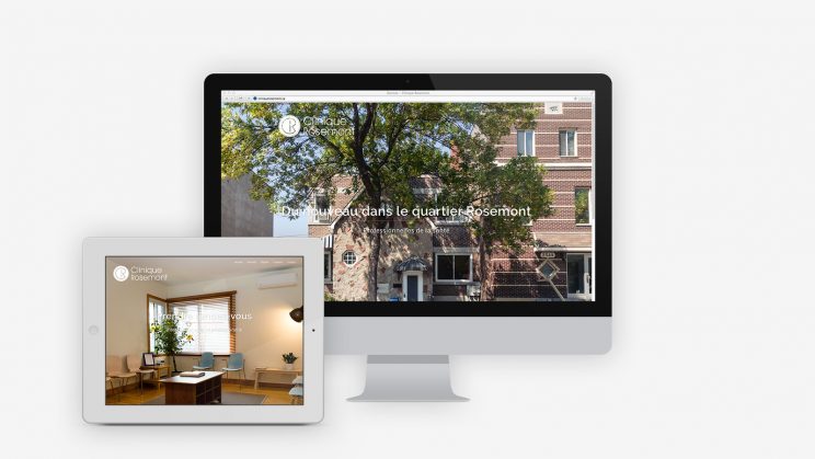 Conception graphique du logo, du site web et de la carte d’affaire de la Clinique Rosemont située à Montréal.